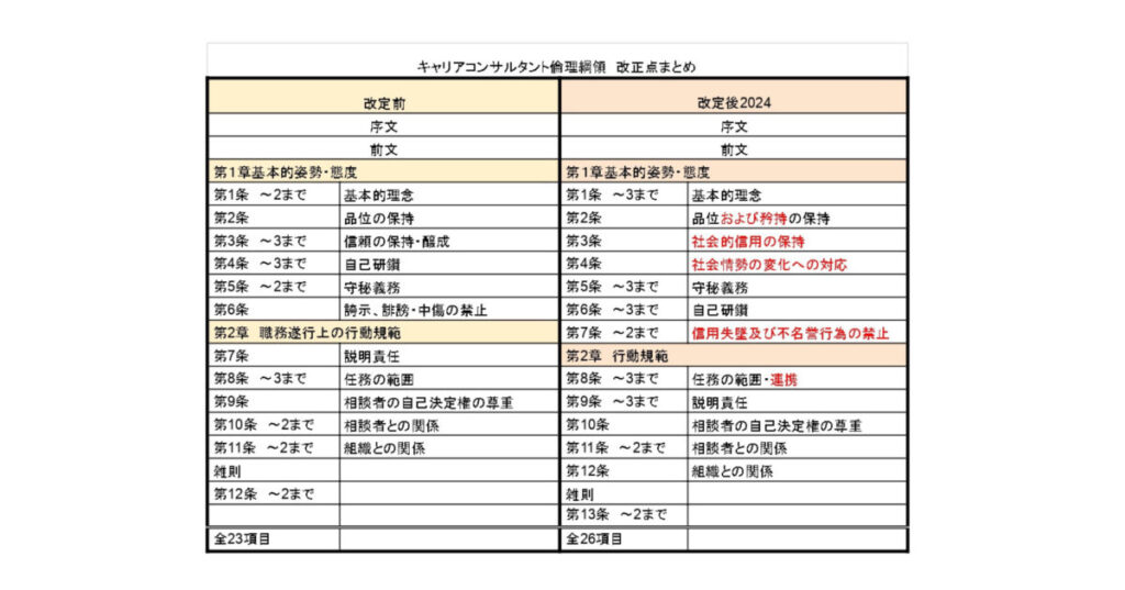 そこで今回は、この『キャリアコンサルタント倫理綱領』がどのように改定されたのか、そのポイントとどこが変わったのかをまとめてみました。